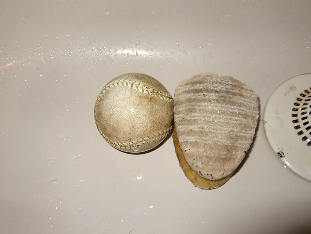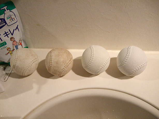 ※この汚れボールは、キャッチャー道具袋の中で一番汚れていたボールを使いました。(わざと汚したボールではありません)